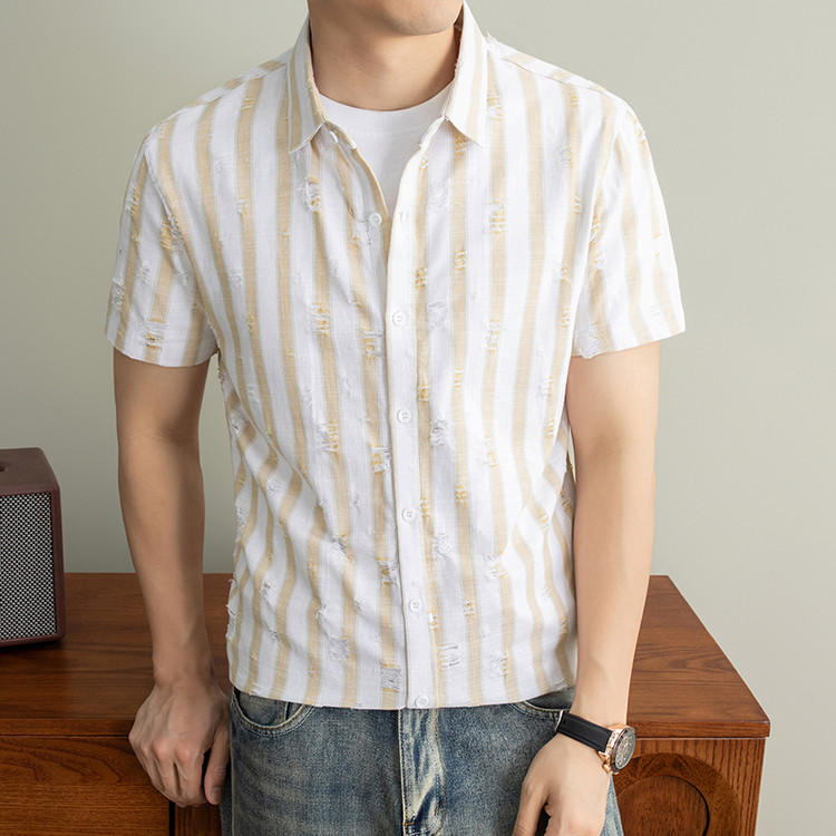 罗蒙衬衫&22026桑蚕丝夏季新款格纹短袖衬衫